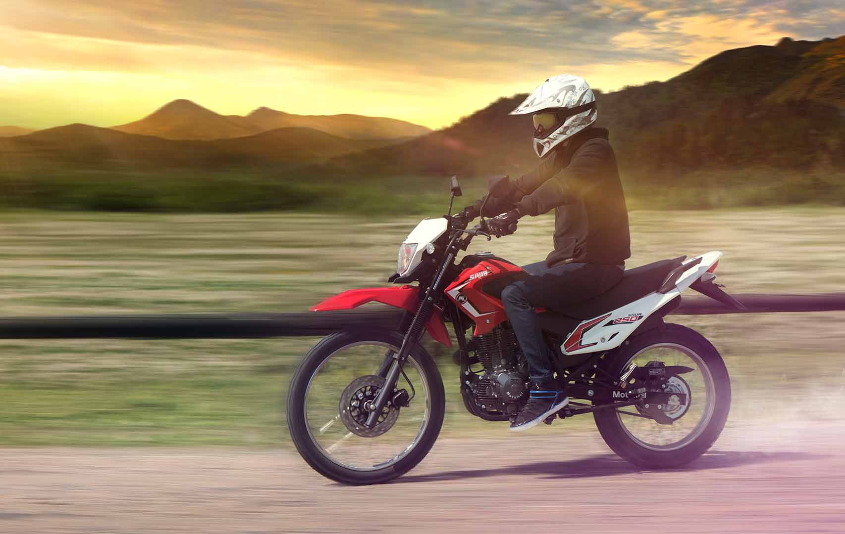 Su gran rendimiento le permite afrontar todo tipo de terreno. Con un potente motor CGB de 250cc con balanceador que reduce las vibraciones, freno de disco delantero y trasero, asiento antideslizante y suspensión de gran recorrido, la Skua 250 es tu compañera de aventuras.