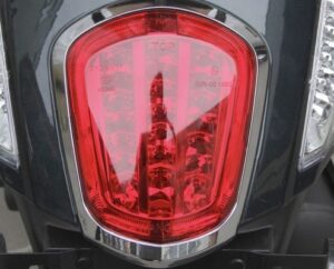 Su tecnología, seguridad y comodidad se unen con un equipamiento único: sistema de freno delantero con CBS, luces led, apoya pies rebatibles y amplio baúl bajo su asiento. Grandes llantas de aleación de 12’ y cubiertas de bandas blancas completan su diseño.