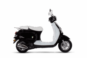 Se destaca por su pintura perlada bicapa con tratamiento de sellado para una mayor duración y protección de los rayos UV. Confortable tanto para el conductor, gracias al amplio espacio para la piernas, como para el pasajero debido al asiento biplaza independiente con baúl guarda objetos.