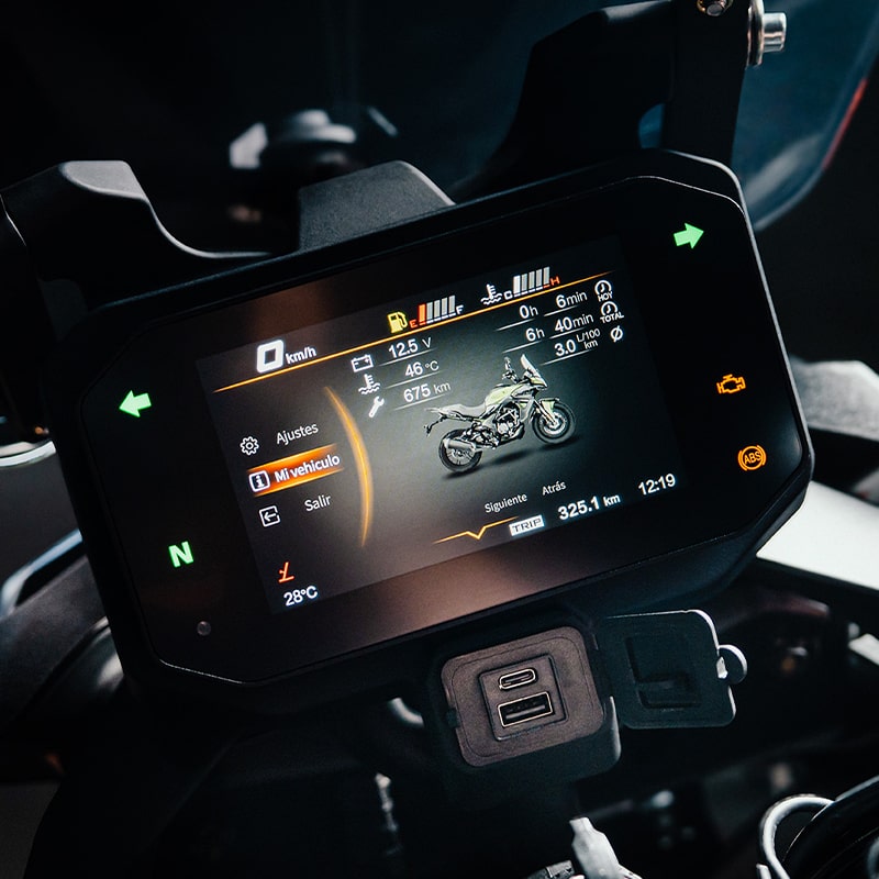 • Display TFT color de 5 pulgadas, con dos modos de visualización e información completa del vehículo.