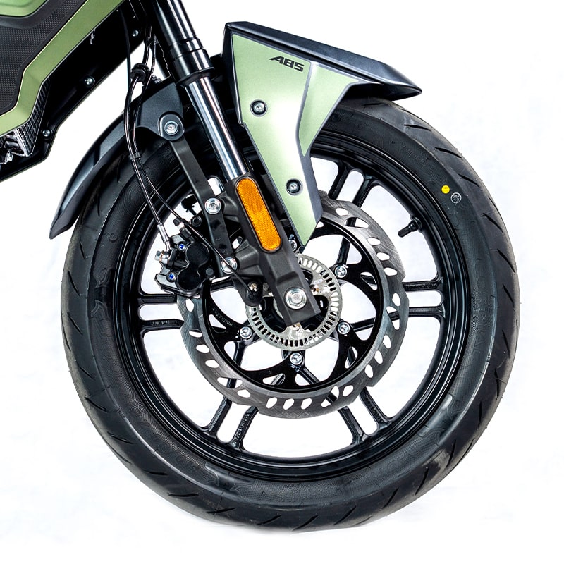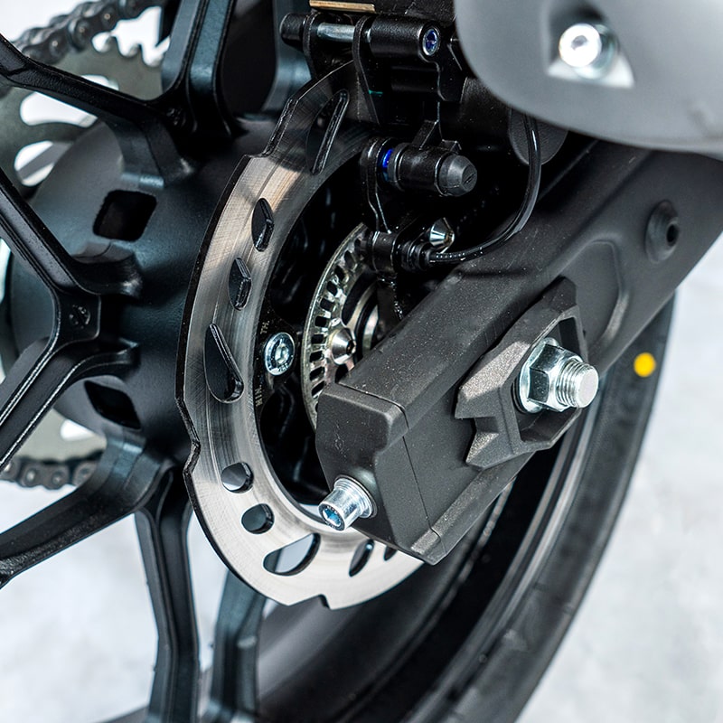 • Sistema de frenos ABS de doble canal, con disco delantero de 300 mm y trasero de 220 mm.