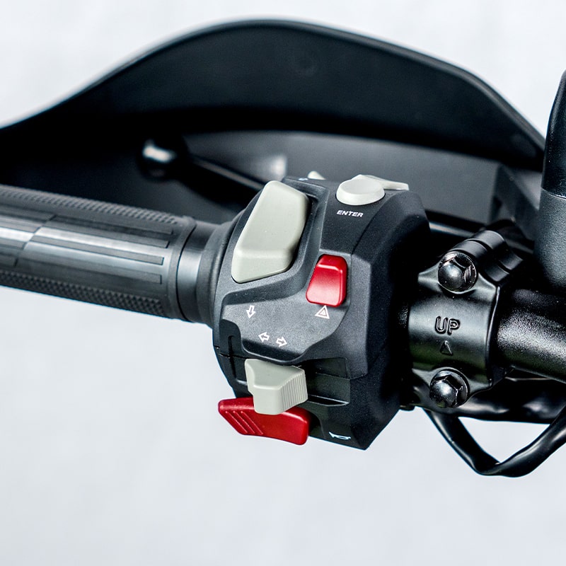 • Puños y asiento calefaccionados con tres niveles de intensidad, activables desde los nuevos comandos del manillar, pensados para maximizar el confort térmico en climas fríos y reducir la fatiga en trayectos largos.