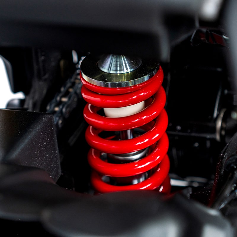 • Suspensiones de alta calidad, con horquilla invertida de 35 mm y monoamortiguador trasero.